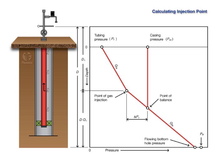 Continuous-flow installation designs vary depending on whether complete and precise well data are known. Reliable inflow well performance and an accurate multiphase-flow correlation are required to establish the approximate point of gas injection in deep wells. When the well data is limited or questionable, the exact point of gas injection cannot be calculated accurately in many wells. This being the case in today’s depletion drive and unconventional reservoirs, your Flowco specialist will design the gas lift solution to perform over the life of the system. When designing your casing, skimping on casing size can ultimately cost lost production that is many times greater than any savings from smaller pipe and hole size. The same is true in flowline size and length. In most cases, increasing the size of the flowline does not compensate for the backpressure generated by the added pipe length. Any item of production equipment that increases backpressure at the wellhead, whether it be wellhead chokes, small flowlines, excessive number of bends, undersized gathering manifolds and separators, or high compressor suction pressure, seriously impacts the operation of a gas lift system.